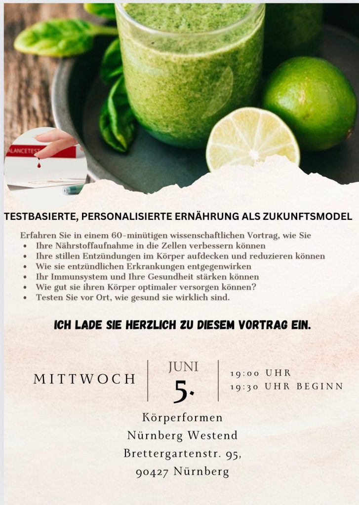 Bei unserem Vortrag am 05.06.24 um 19:30 Uhr erhältst du wichtige Infos zur Nährstoffaufnahme in den Zellen und was du gegen stille Entzündungen tun kannst.